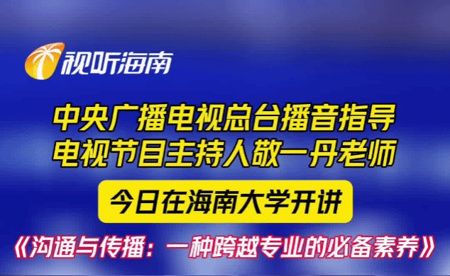 中央广播电视总台播音指导、电视节目主持人敬一丹老师今日在海南大学开讲《沟通与传播:一种跨越专业的必备素养》
