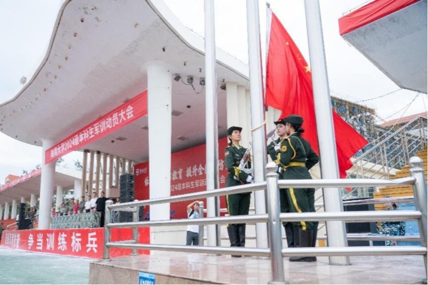 本站讯(记者 郑润泽 郑泽娇 郑伟平)迷彩青春扬斗志,意气风发启新程。9月9日,海南大学2024级本科生军训动员大会在海甸校区、儋州校区和观澜湖校区同步举行。9月9日,海南大学举行2024级本科生军训动员大会,这是海甸校区升旗仪式。宣传部 摄9月9日,海南大学举行2024级本科生军训动员大会,这是海甸校区军训动员大会现场。宣传部 摄9月9日,海南大学举行2024级本科生军训动员大会,这是儋州校区军训动员大会现场。丹心书院 供图9月9日,...
