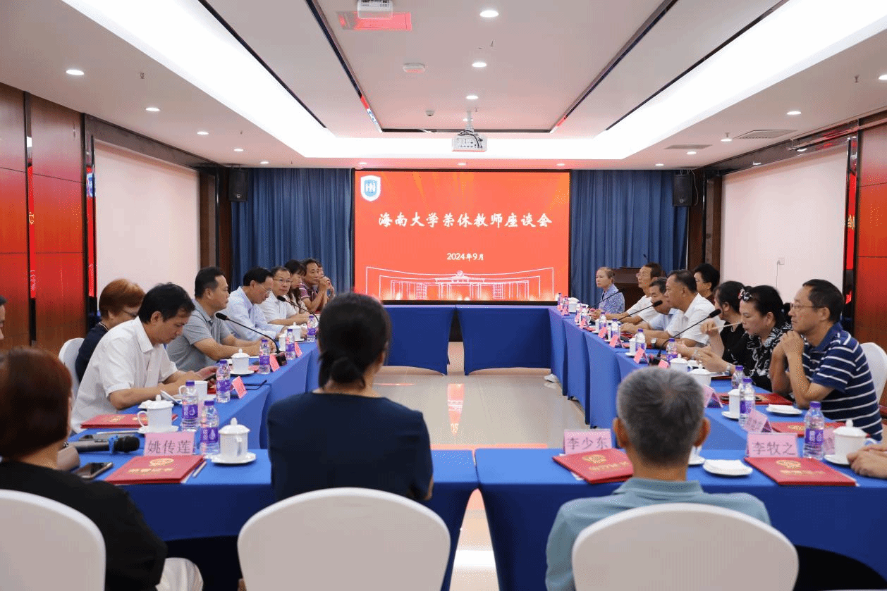 本站讯(记者 周何佳慧 李天琦 张雨晗)为大力弘扬教育家精神,营造尊师重教的浓厚氛围,9月14日上午,海南大学2023-2024年度荣休教师座谈会在国际学术交流中心和怡厅举行。海南大学党委书记符宣国出席座谈会并作讲话,座谈会由党委常委、副校长李步洪主持。9月14日上午,海南大学举行荣休教师座谈会在国际学术交流中心举行,这是会议现场。周何佳慧摄符宣国代表学校向荣休教师表示衷心感谢和崇高敬意,并围绕人才培养、科学研究、社会服务、...