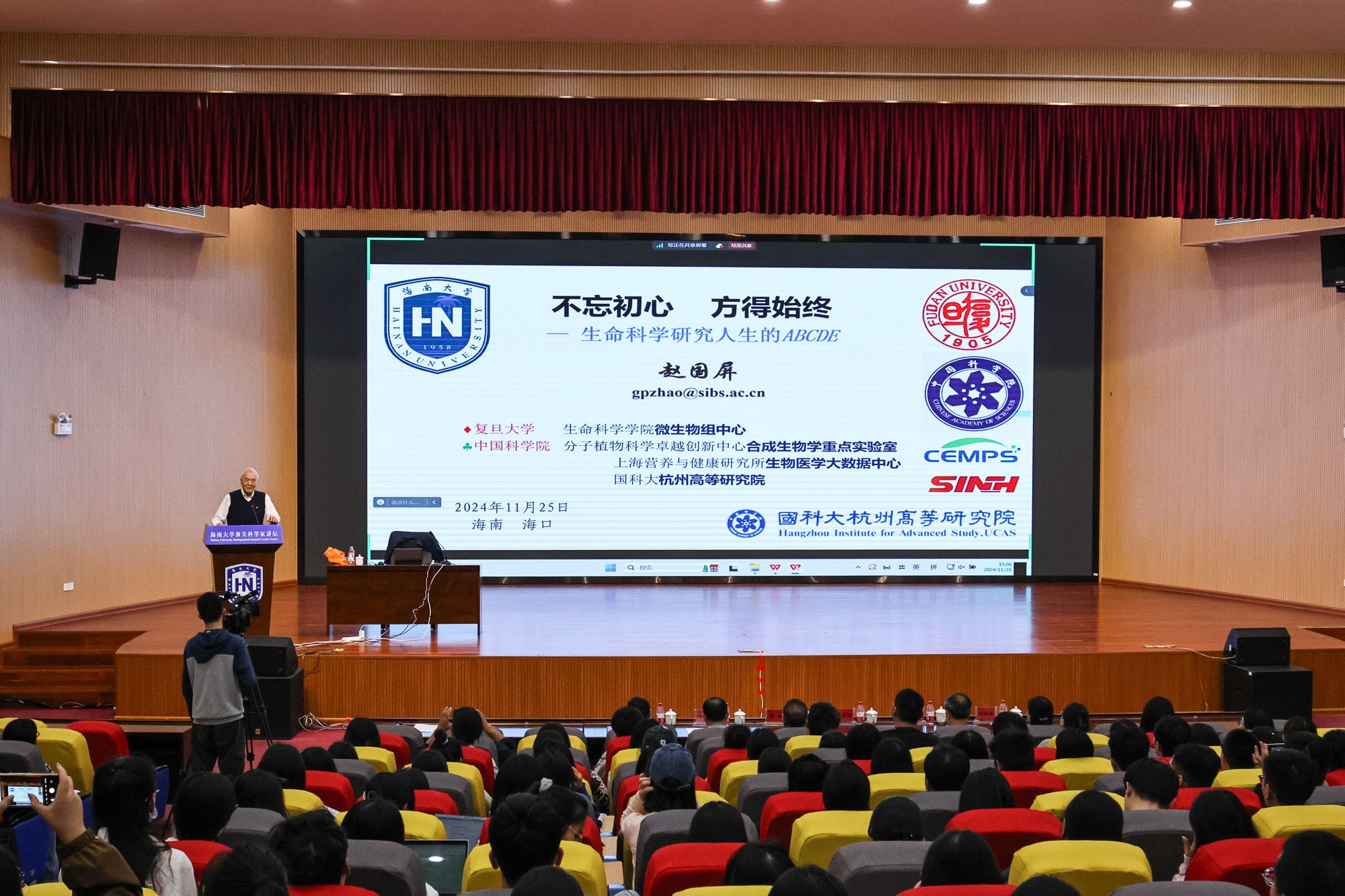 本站讯(记者 杨梦涵 通讯员 焦建东)11月25日下午,海南大学第三十二期顶尖科学家讲坛在田家炳楼副楼报告厅举办。中国科学院院士、复旦大学微生物组中心主任赵国屏作题为《不忘初心、方得始终—生命科学研究人生的ABCDE》的专题报告。海南省科学技术协会党组成员、副主席徐伟;海南大学党委常委和校领导邱锡光、邹勇华、李步洪、韩淑梅、谭勇以线上线下的方式出席讲坛。讲坛由李步洪主持。11月25日下午,海南大学举办第三十二期顶尖科学家讲坛。...