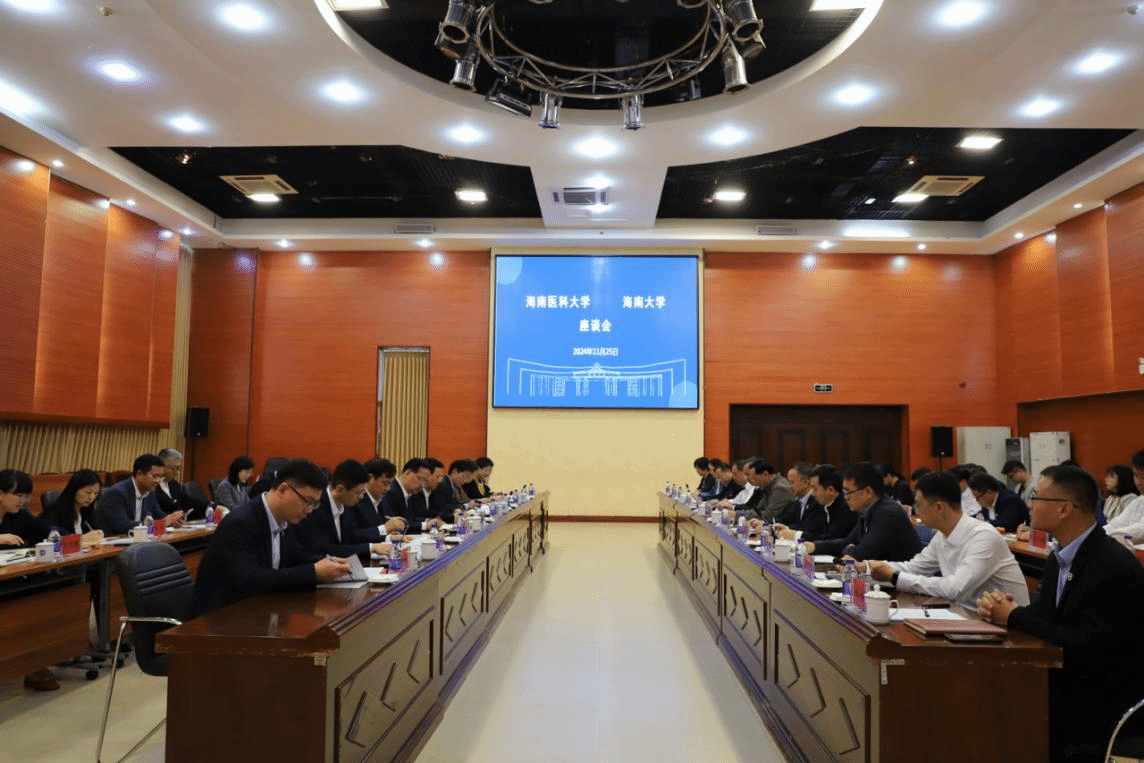 11月25日上午,海南医科大学党委书记赵建农,校长、中国科学院院士陈国强一行访问海南大学,并在思源学堂多功能厅举行交流座谈会。海南大学党委书记符宣国,校长、中国科学院院士骆清铭出席会议。