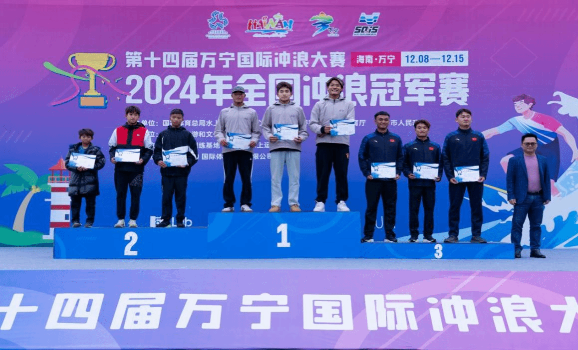 本站讯(记者 郑润泽 戎蓉)12月8日至15日,第十四届万宁国际冲浪大赛暨2024年全国冲浪冠军赛在海南万宁举行。海南大学2024级学生王成征、2023级学生刘琛在公开组男子短板个人赛中分别获得冠军、亚军,并在公开组男子短板团体赛、接力赛中获得第一名。2023级学生黄云翁在公开组男子短板团体赛中获得第三名。2024级学生邓雪莹、王雪银分别在公开组女子短板团体赛、接力赛中获得第一名、第三名。这是公开组男子短板团体赛颁奖典礼现场。...