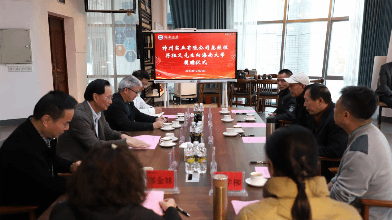 本站讯(记者 王朝妙 杨婕)12月25日下午,神州实业有限公司总经理符祖义向海南大学捐赠苗木仪式在思源学堂校友之家举行。海南大学党委书记符宣国,党委常委和校领导邱锡光、贺勇出席仪式。仪式由邱锡光主持。12月25日下午,神州实业有限公司总经理符祖义向海南大学捐赠苗木,捐赠仪式在思源学堂校友之家举行。王朝妙 摄符祖义表示,国家的繁荣昌盛离不开人才的支撑,人才的培养离不开优质的教育,教育是国家发展的基石,是民族振兴的摇篮。...