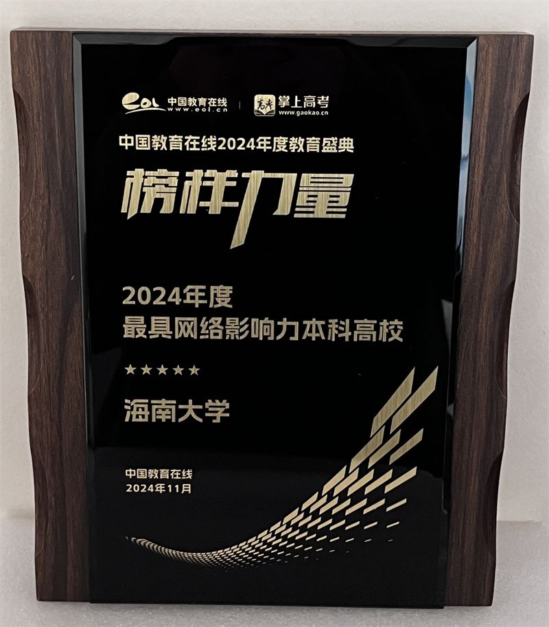 近日,中国教育在线“榜样力量·2024年度教育盛典”优秀案例公布。海南大学凭借极具创新性与前瞻性的招生宣传策略,以及扎实过硬的宣传执行实力,从众多高校中突围,获评“2024年度最具网络影响力本科高校”。本届活动组织相关专家进行评审,全面采集并整合了来自多渠道的海量数据信息,包括掌上高考高校招生数据库、掌上考研高校招生数据库、高招智能问答系统、中教智媒内容平台所汇集的庞大信息源,以及第三方平台提供的相关数据等,...