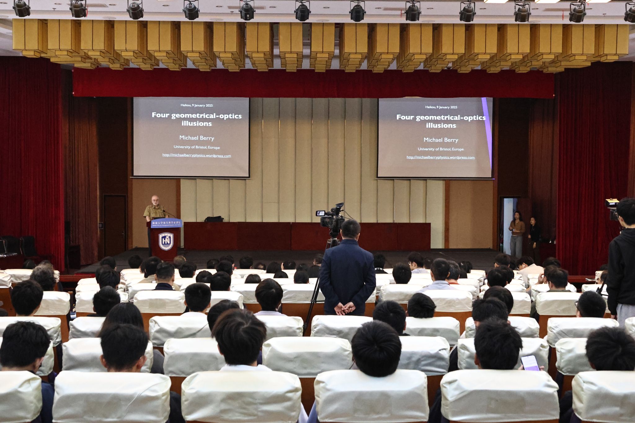 本站讯(记者 张阳 郑丹婷 通讯员 吴阳虹)1月9日下午,海南大学第三十五期顶尖科学家讲坛在社科楼二楼报告厅举办。美国科学院外籍院士,狄拉克奖、沃尔夫奖和洛伦兹奖得主,英国布里斯托大学荣休物理学教授迈克尔·贝里作题为《四种几何光学幻象》的主题报告。中国科学院院士叶朝辉,海南大学党委常委、副校长李步洪出席讲坛。讲坛由李步洪主持。1月9日下午,海南大学举办第三十五期顶尖科学家讲坛。这是迈克尔·贝里在作报告。张阳 ...