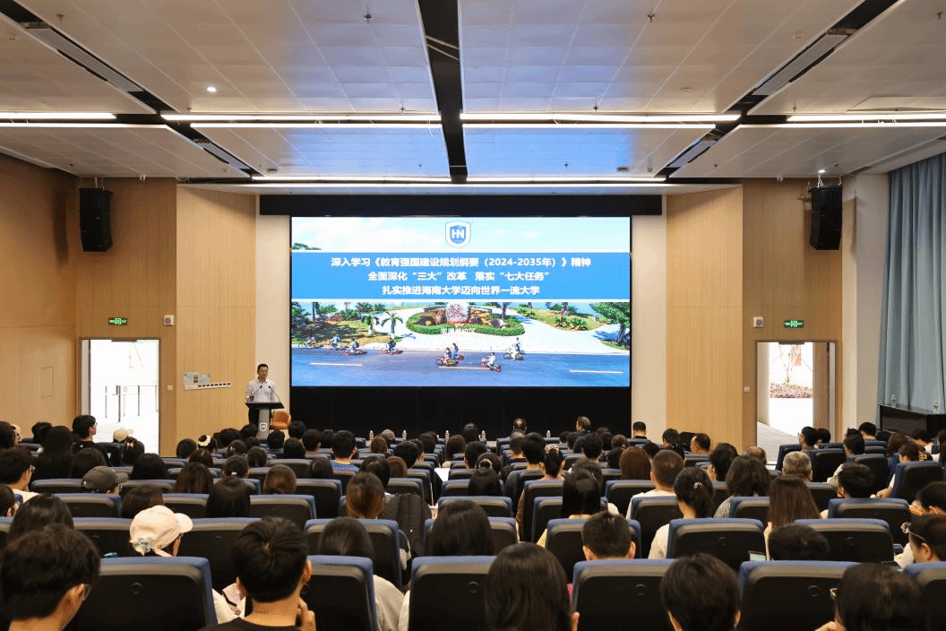 本站讯(记者 陈思甜 李思颖 张吉安 郑润泽)4月25日下午,深入学习《教育强国建设规划纲要(2024—2035年)》精神,全面深化“三大改革”,落实“七大任务”,扎实推进海南大学迈向世界一流大学宣讲会在观澜湖校区A3教学楼A107报告厅举行。海南大学校长、中国科学院院士骆清铭出席会议并作宣讲。会议由党委常委、副校长高佃恭主持。4月25日下午,骆清铭在观澜湖校区宣讲《教育强国建设规划纲要(2024-2035年)》精神。这是会议现场。...