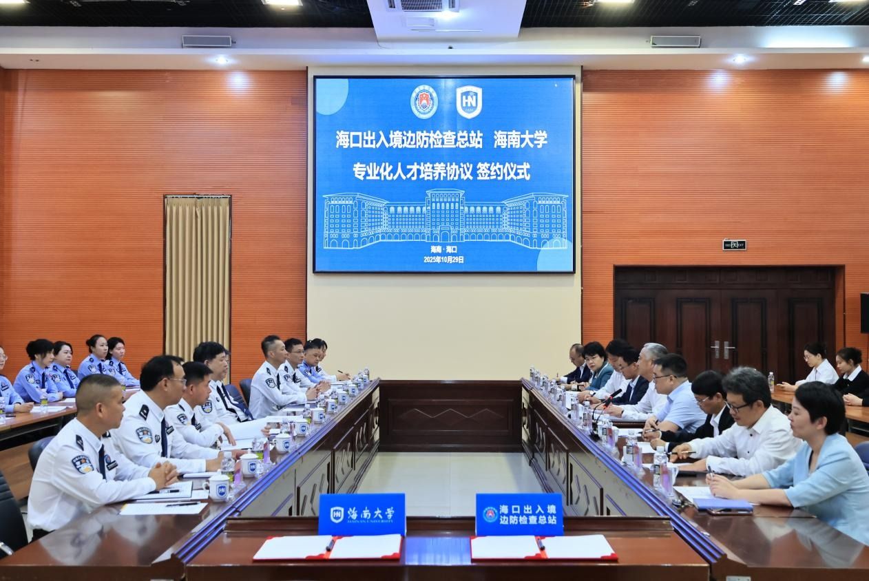 本站讯(记者 刘俊乐 范宇婷)10月29日下午,海南大学与海口出入境边防检查总站在海南大学思源学堂多功能厅举行专业化人才培养协议签约仪式,开启校站合作新篇章。海口出入境边防检查总站党委书记、总站长王海兴,海南大学党委书记李湖出席签约仪式,校党委常委、副校长刘谦主持。10月29日下午,海南大学与海口出入境边防检查总站举行签约仪式。这是签约仪式现场。刘俊乐 摄王海兴表示,近年来海南大学各项事业发展突飞猛进,对总站的干部人才培训、...