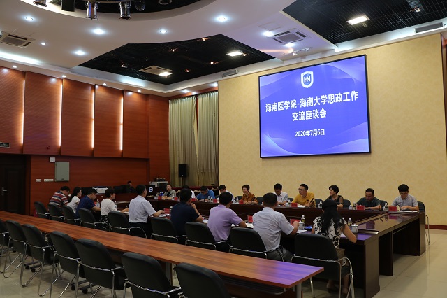 本站讯(记者/摄影申婷婷)7月6日下午,海南医学院副校长张彩虹一行到海南大学交流思政工作。海南大学党委书记武耀廷与张彩虹一行在思源学堂多功能厅举行座谈会,双方围绕辅导员队伍建设、心理健康教育队伍建设进行了充分的交流与探讨,并表示将保持紧密联系,加强沟通合作,共同为海南自贸港建设作出贡献。会议现场 海南医学院、海南大学相关职能部门及单位负责人参加会议。(编辑:李布明)