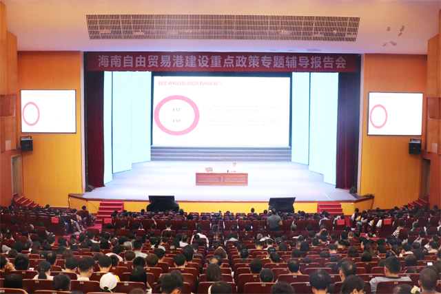 本站讯(记者/摄影 陈瑞林)10月20日下午,海南大学在思源学堂举办海南自由贸易港(以下简称“海南自贸港”)建设重点政策专题辅导报告会。海南省委副秘书长、省委深改办(自贸港工委办)常务副主任王磊应邀作《海南自由贸易港重点政策介绍及省委七届八次全会精神宣讲》专题报告。中国科学院院士、校长骆清铭,党委常委、副校长陈险峰、梁谋,党委常委、组织部部长韩淑梅,党委常委、统战部部长陈明宝出席会议。 王磊从海南自...