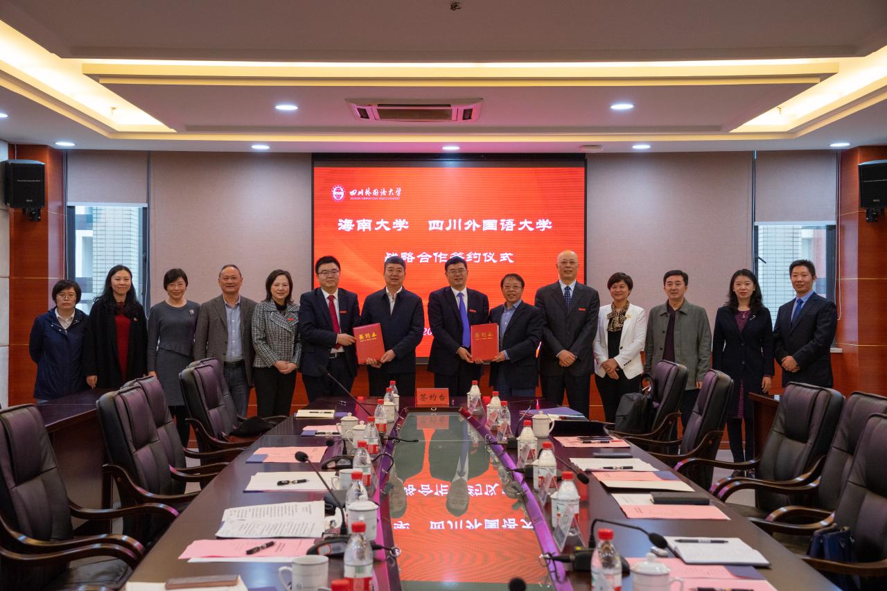 本站讯(记者 蔡盼盼 通讯员 王动动)10月19日上午,海南大学与四川外国语大学战略合作框架协议签约仪式在四川外国语大学图书馆505室举行。海南大学党委书记武耀廷,党委常委、副校长王崇敏;四川外国语大学党委书记邹渝,校长董洪川,副校长李小川、苟朝莉出席签约仪式。苟朝莉主持仪式。 武耀廷代表海南大学向四川外国语大学长期以来的帮助和支持表示感谢。他指出,海南大学将按照《海南大学、四川外国语大学战略合作框架...