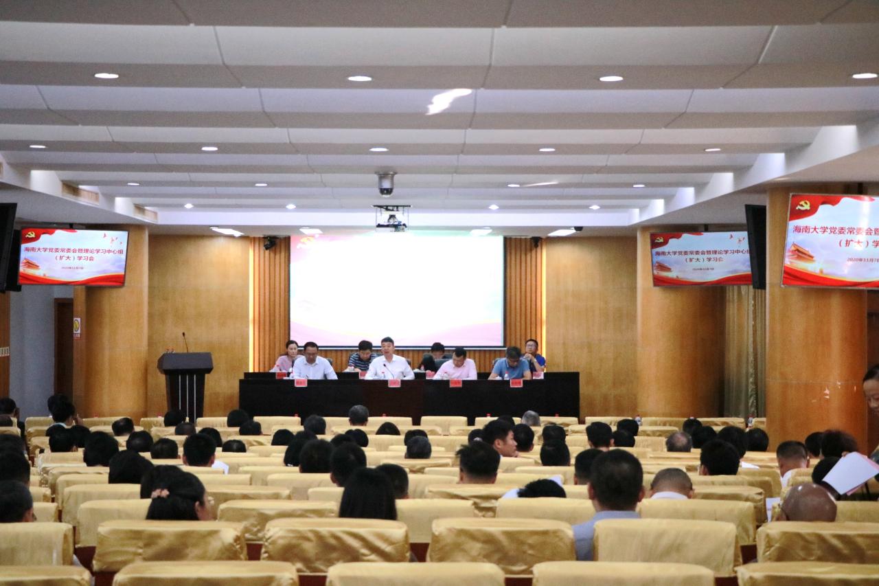 本站讯(通讯员 李宏)11月7日下午,校党委书记武耀廷在办公楼一楼报告厅主持召开海南大学党委常委会暨理论学习中心组(扩大)学习会议,专题学习习近平总书记在党的十九届五中全会上的重要讲话和十九届五中全会精神,安排部署学习贯彻工作。全体在校校党委常委和校领导出席会议。会议传达学习了十九届五中全会相关文件精神,宣读下发了《中共海南大学委员会学习宣传贯彻党的十九届五中全会精神工作方案》。武耀廷指出,党的十...