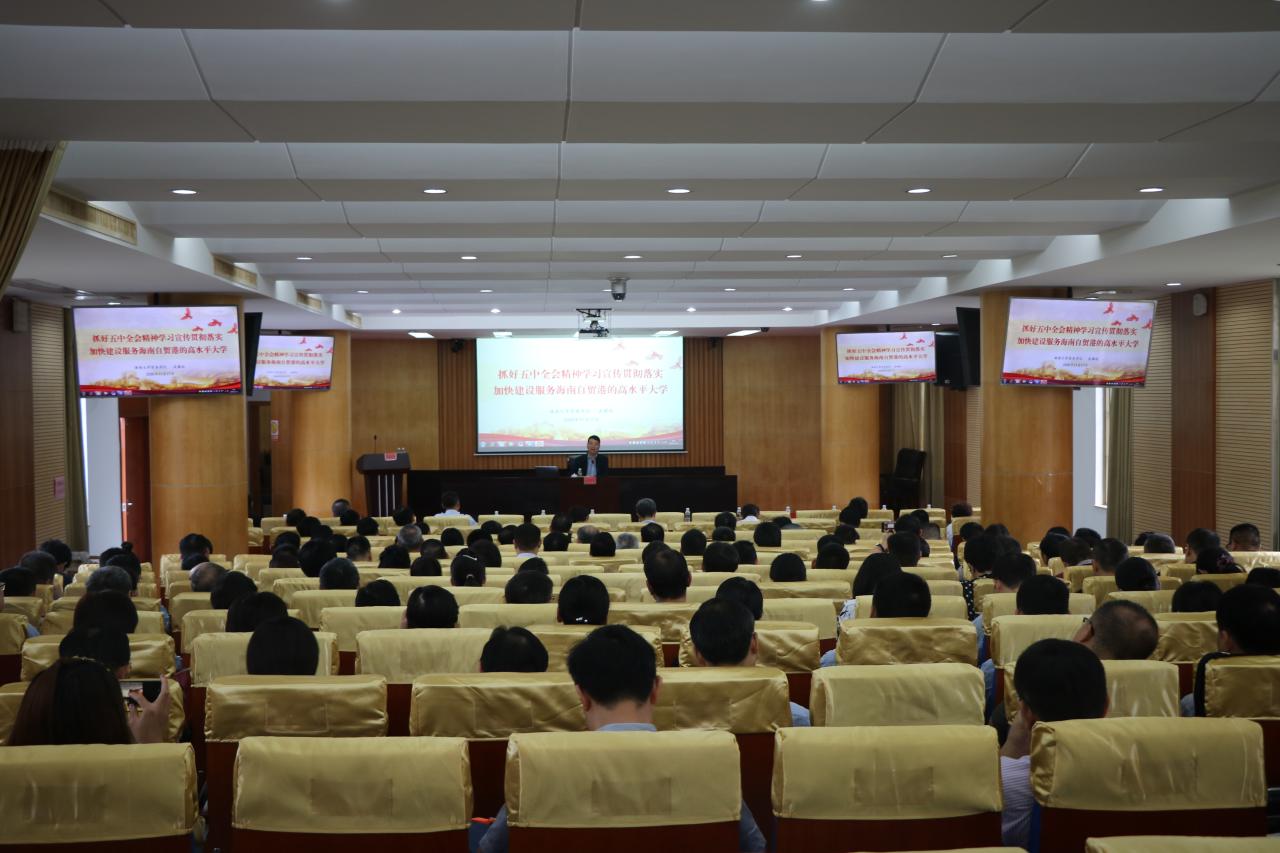 本站讯(记者/摄影 余梦月 葛士华)11月17日上午,海南大学在办公楼一楼报告厅举行党的十九届五中全会精神宣讲暨干部培训大会。校党委书记武耀廷,中国科学院院士、校长骆清铭,党委常委、组织部部长韩淑梅,党委常委、宣传部部长谭勇,党委常委、统战部部长陈明宝出席会议。会议由韩淑梅主持。 武耀廷以“抓好五中全会精神学习宣传贯彻落实 加快建设服务海南自贸港的高水平大学”为主题作开班第一讲。武耀廷紧紧围绕“十九届五...