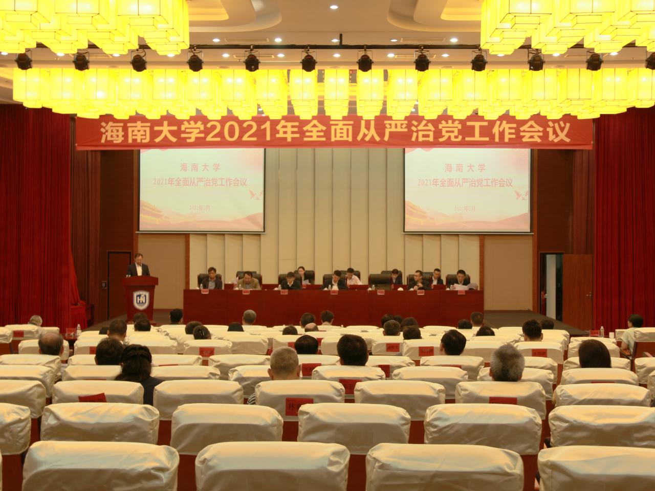 本站讯(记者 余梦月 张赫 摄影 张赫)3月25日上午,海南大学2021年全面从严治党工作会议在社科楼二楼报告厅召开。省纪委监委第一监督检查室四级调研员吴蔷到会指导。海南大学党委书记武耀廷,党委副书记、校长骆清铭,党委常务副书记廖清林,纪委书记、监察专员郑尉杰,副校长傅国华,党委常委、副校长胡新文,党委常委、副校长陈险峰,党委常委、副校长叶光亮,党委常委、组织部部长韩淑梅,党委常委、宣传部部长谭勇,党委常...