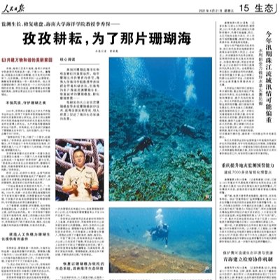 (记者 黄晓慧)美丽的珊瑚是海洋生物栖息繁衍的重要场所。每年珊瑚虫排卵繁育的季节,海南大学海洋学院教授李秀保都会带着科研团队,到海南的多片海域监测珊瑚生长、修复破碎的珊瑚礁盘、耕耘珊瑚苗圃……他研发的火山岩固定珊瑚礁盘等多项珊瑚礁保护技术,获得国家发明专利,很大程度上促进了海洋生态环境的改善。 李秀保在讲解珊瑚礁保护。资料图片夜晚,海南三亚某片海域,海南大学海洋学院教授李秀保纵身一跃,下潜10米。...