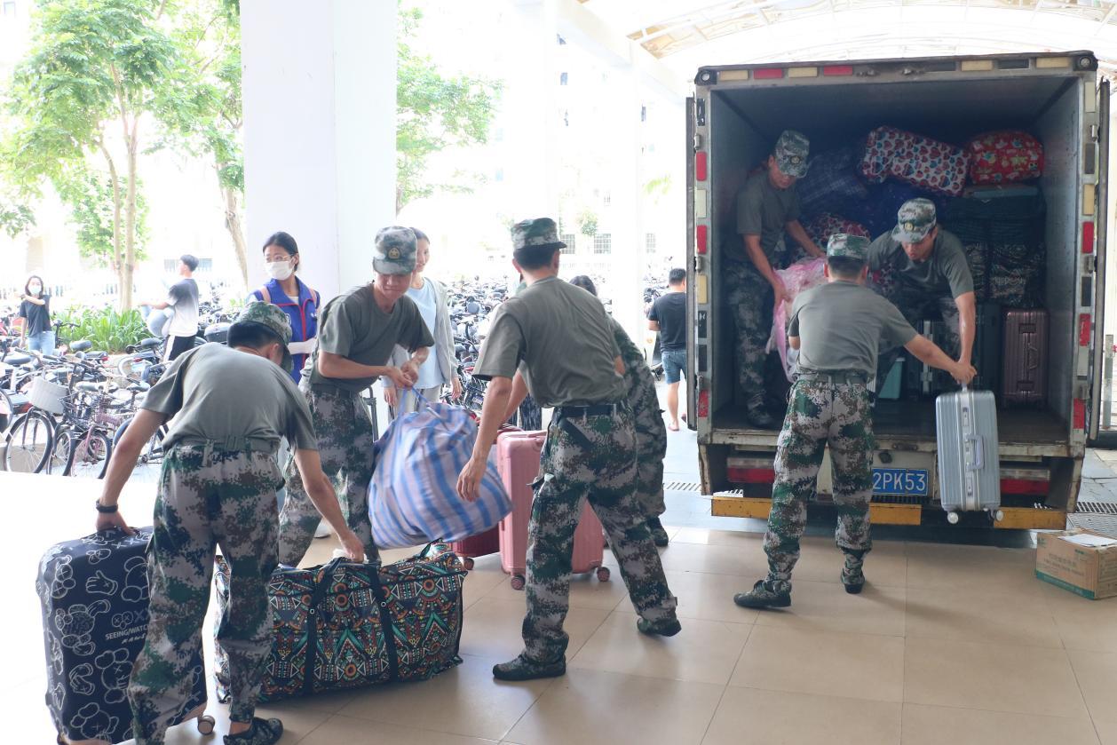 本站讯(记者/摄影 徐士闲)8 月 27 日至 28 日,根据学校统一部署,海南大学共有7个学院的2117名2020级本科生从城西文科基础教学部搬迁至海甸校区。 教官队、志愿者协助搬迁。 徐士闲 摄 在本次搬迁工作中,学校共协调安排搬迁客车55辆、货车86辆,以学院为单位进行接送,并安排有专门车辆进行引导,确保车队安全有序通行。每辆搬迁车辆都安排有随车教师和工作人员,负责学生行李堆放、现场对接和上下车安全。在两校区宿舍楼...