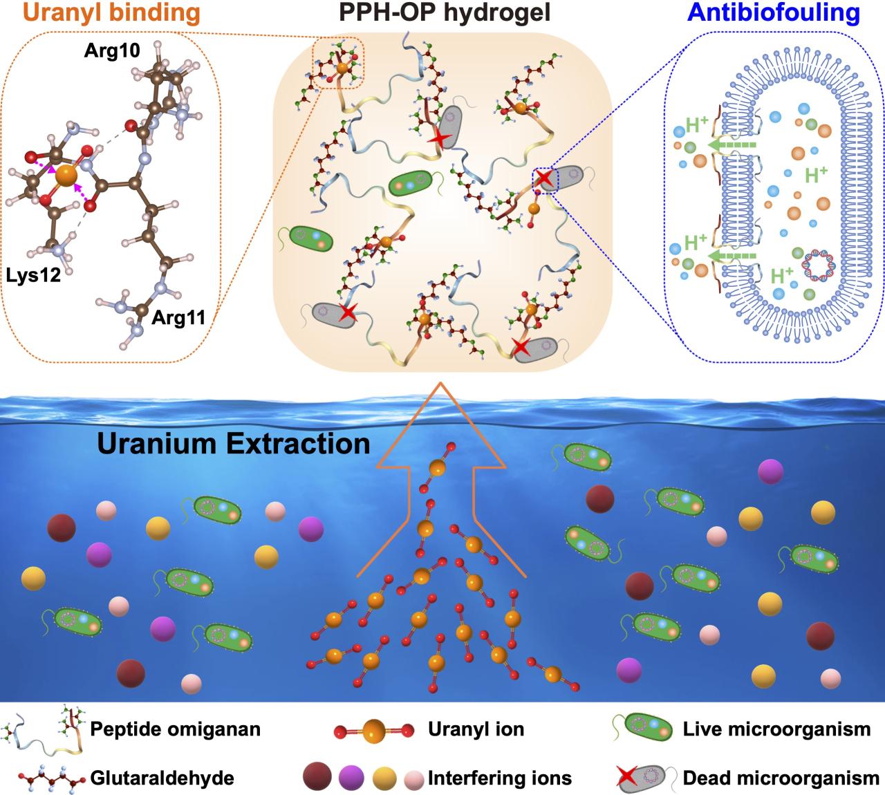 本站讯(记者 徐士闲)近日,海南大学南海海洋资源利用国家重点实验室海水提铀团队在《Nature sustainability》期刊上报道了一种具有铀酰配位和海洋生物污损防控双重功能的聚合肽水凝胶海水提铀吸附剂材料。该吸附剂同时具备广谱、高效的海洋生物污损防控功能和对海洋中极低浓度铀酰离子的强亲和力、高选择性吸附功能。铀资源是核工业赖以发展的基础资源,目前陆地铀资源供应不足问题日益显现。从地球上铀资源的分布看,海水中...