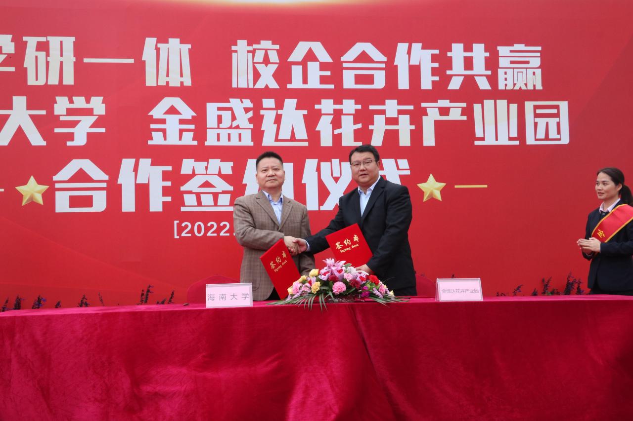 本站讯(记者 李天畅 通讯员 罗国忠)2月16日下午,海南大学与金盛达花卉产业园举行“产学研一体 校企合作共赢”合作签约仪式。中国科学院院士、海南大学校长骆清铭;金盛达花卉产业园董事长庄志勇出席仪式。根据协议,金盛达花卉产业园将为海南大学无偿提供30亩土地,用于农业产业园区的规划设计和建设发展,旨在强化校企合作,推动社会服务落地生根,服务海南自由贸易港建设,推动海南经济结构转型升级,拉动经济增长。签约现...