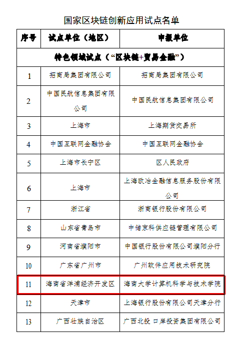 本站讯(记者 许劲草 通讯员 张琼英)日前,中央网信办等十六部门印发通知,公布了15个综合性和164个特色领域国家区块链创新应用试点名单。其中,海南大学计算机科学与技术学院入选“区块链+贸易金融”特色领域试点名单。该项目聚焦海南省洋浦经济开发区“区块链+贸易金融”领域,由海南大学计算机科学与技术学院杨天若院士牵头申报,并于日前入选国家区块链创新应用试点。该项目在海南大学计算机科学与技术学院牵头下,依托洋...