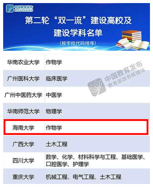 2月14日,经国务院批准,教育部、财政部、国家发展改革委公布第二轮“双一流”建设高校及建设学科名单。海南大学作物学学科入选。2017年9月,海南大学作物学学科进入第一轮“双一流”建设高校及建设学科名单。此后,海南大学以重大基础设施建设为抓手,突出“南繁”“热带”特色,全力推进作物学世界一流学科建设,并取得了较好成绩——作物学学科全面完成建设期的目标任务,并在人才培养、团队建设、科学研究、社会服务、国际...