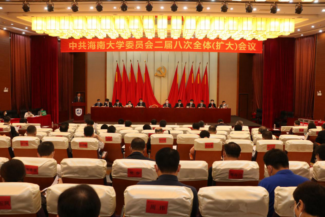 本站讯(记者/摄影 许劲草 李天畅)3月17日上午,中共海南大学委员会二届八次全体(扩大)会议在社科楼二楼报告厅召开。海南大学党委常委和校领导符宣国、骆清铭、傅国华、胡新文、王崇敏、梁谋、叶光亮、郑尉杰、曹宪忠、韩淑梅、谭勇、陈明宝出席会议。党委副书记、校长骆清铭主持会议。 符宣国讲话。许劲草 摄校党委书记符宣国作题为《踔厉奋发 笃行不怠 向着世界一流学科和国内一流大学扎实迈进》的工作报告。他指出,2021...