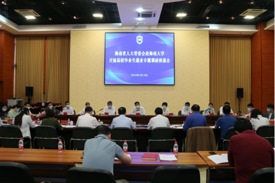 本站讯(记者 李天畅 董澄和)3月18日上午,海南省人大常委会一行到海南大学开展高校毕业生就业专题调研,并召开座谈会。海南省人大常委会副主任、省人大社会委主任委员关进平;海南省人力资源和社会保障厅党组书记、厅长宋少华;海南省教育厅副厅长黎岳南;海南大学党委书记符宣国,校党委副书记、校长骆清铭,副校长傅国华出席会议。符宣国主持会议。座谈会现场。李天畅 摄关进平对海南大学近年来的发展和就业工作取得的成绩...