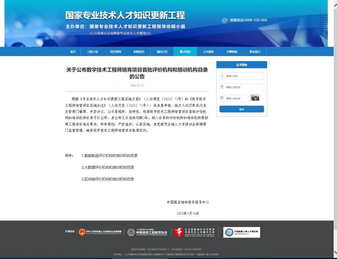 本站讯(记者 李天畅)近日,人力资源和社会保障部中国就业培训技术指导中心公示了数字技术工程师培育项目首批培训机构名单,海南大学顺利入围,成为海南省内首批数字技术工程师培育项目区块链方向唯一培训机构。该项目由海南大学继续教育学院、计算机科学与技术学院联合申报。近年来,党和国家高度重视数字技术技能人才培养和评价工作。数字技术工程师培育项目是国家专业技术人员知识更新工程(2021-2030)的核心内容,旨在加...