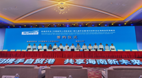 本站讯(记者 董澄和 通讯员 史旭峰)7月7日上午,欧美同学会(中国留学人员联谊会)第九届年会暨海归创新创业海南自贸港峰会在三亚开幕。开幕式上,在全国人大常委会副委员长、欧美同学会会长丁仲礼,中央统战部副部长、国务院侨务办公室主任陈旭,海南省委书记沈晓明,省委副书记、省长冯飞等领导的共同见证下,欧美同学会党组书记、秘书长王丕君,中科院院士、海南大学校长骆清铭分别代表欧美同学会和海南大学签署战略合作框...