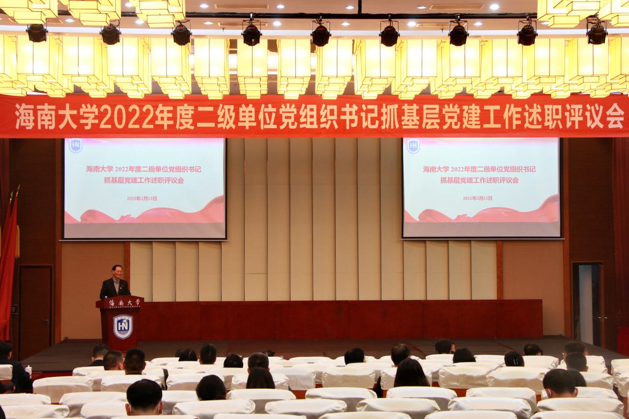 本站讯(记者 王一钦 摄影 邓燎 蒋明希 通讯员 郭孝伟)3月13日下午,海南大学2022年度二级单位党组织书记抓基层党建工作述职评议会在社科楼二楼报告厅召开。校党委书记符宣国,党委副书记、校长骆清铭出席会议。会议由党委常委、副校长梁谋主持。2022年度二级单位党组织书记抓基层党建工作述职评议会现场。 邓燎摄符宣国对参加现场述职的11位二级单位党组织书记逐一点评,并作总结讲话。他指出,述职评议会既是对二级单位党组...