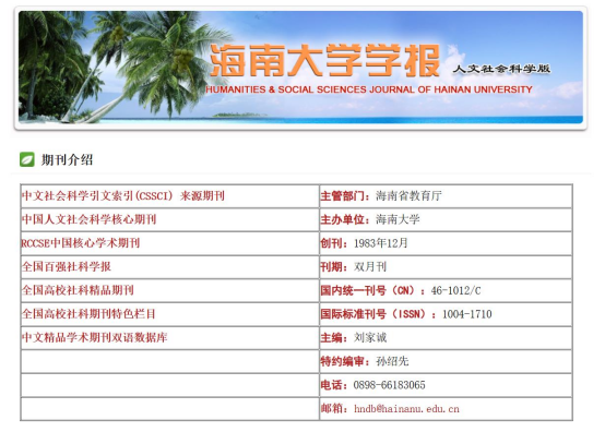 本站讯(记者 梁现战 通讯员 昂颖)近日,中国社会科学评价研究院在北京发布《中国人文社会科学期刊AMI综合评价报告(2022)》。由海南大学主办的《海南大学学报(人文社会科学版)》连续三届获评中国人文社会科学期刊AMI综合评价(综合·高校综合性学报类)核心期刊。中国人文社会科学期刊AMI综合评价报告(2022)-简版 《海南大学学报(人文社会科学版)》创刊于1983年12月,坚持以质量求生存,以特色谋发展,突出海南大学特色...
