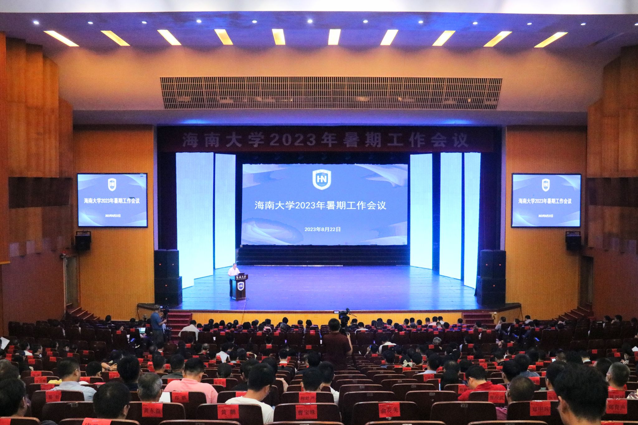 本站讯(记者 郑润泽 吕燕萍)谋发展、惠师生、聚众智,8月21日至23日,海南大学召开2023年暑期工作会议,会议主题为“深化‘三大改革’,推进学校高质量发展”。党委书记符宣国作总结讲话,校长、中国科学院院士骆清铭作主题工作报告,党委常委和校领导曹兵、高佃恭、邱锡光、曹宪忠、陈骏、谭勇、陈明宝出席会议,全体与会代表汇聚思源学堂,围绕学校“三大改革”与高质量发展建言献策、研讨交流、凝聚共识。会议现场。 吕燕萍 摄本次暑期工作会议,...