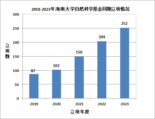本站讯(记者 王博 通讯员 杨欢 秦春秀)8月24日,国家自然科学基金委员会公布了2023年度集中申报项目的评审结果,海南大学获批项目251项,立项数连续5年实现快速增长并创下历史新高,平均资助率23.18%高于全国平均资助率7.15个百分点。截至目前,我校共获批国家自然科学基金项目252项。其中,重点项目1项、面上项目25项、地区科学基金项目137项、青年科学基金项目88项、专项项目1项。国家自然科学基金项目聚焦基础、前沿、人才,注重创新团队和学科交叉,...