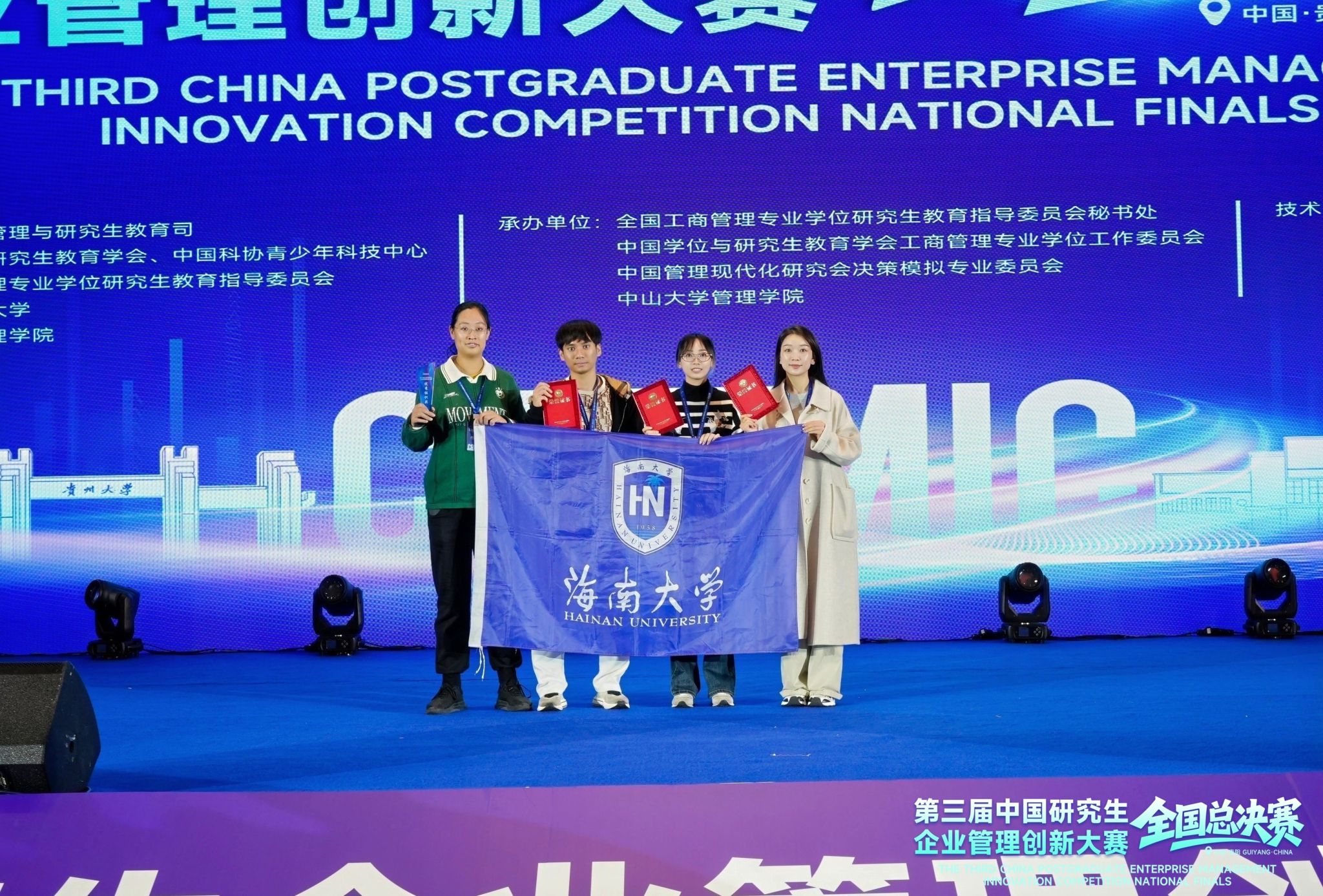 本站讯(通讯员 戚晓慧)2025年11月8日,第三届中国研究生企业管理创新大赛总决赛于贵州大学顺利结束。海南大学凭借出色的组织能力,荣获优秀组织奖,与北京大学、哈尔滨理工大学、电子科技大学等知名高校共同获此殊荣。海南大学MBA“三思智行队”,成功突围进入总决赛。全国赛共有200多所院校的2514支队伍参加企业决策赛道,245支队伍晋级全国总决赛。由罗靖耀、邓付杰、程安娜三名学生组成的MBA代表队“三思智行队”,在国际商学院巩玲君副教授的悉心指导下,...