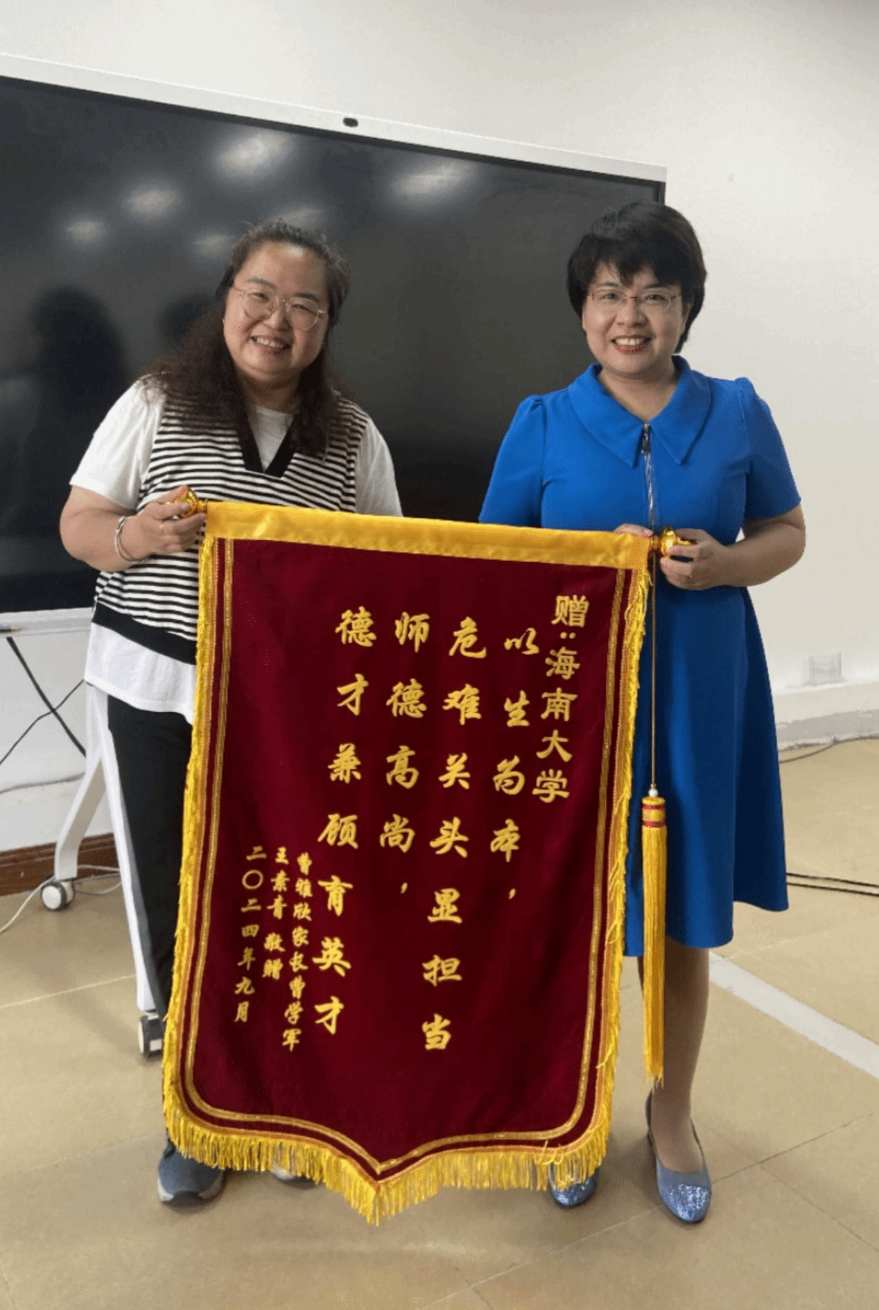 本站讯(记者 赵月)以生为本见真情,危险关头显担当。9月30日,海南大学乘风书院、食品学院2023级研究生曹雅欣母亲来到学校,给学校敬赠锦旗,呈送感谢信。6月20日下午,曹雅欣在实验室突发疾病。学院、书院第一时间响应并联系家长协调处置。学校党委得知情况后高度重视,积极协调各方资源做好该同学的全力救治和相关事宜的妥善处置。经过近一个月的重症抢救,学生脱离生命危险。后经三个周期的康复治疗,学生已于9月25日正式办理出院,...