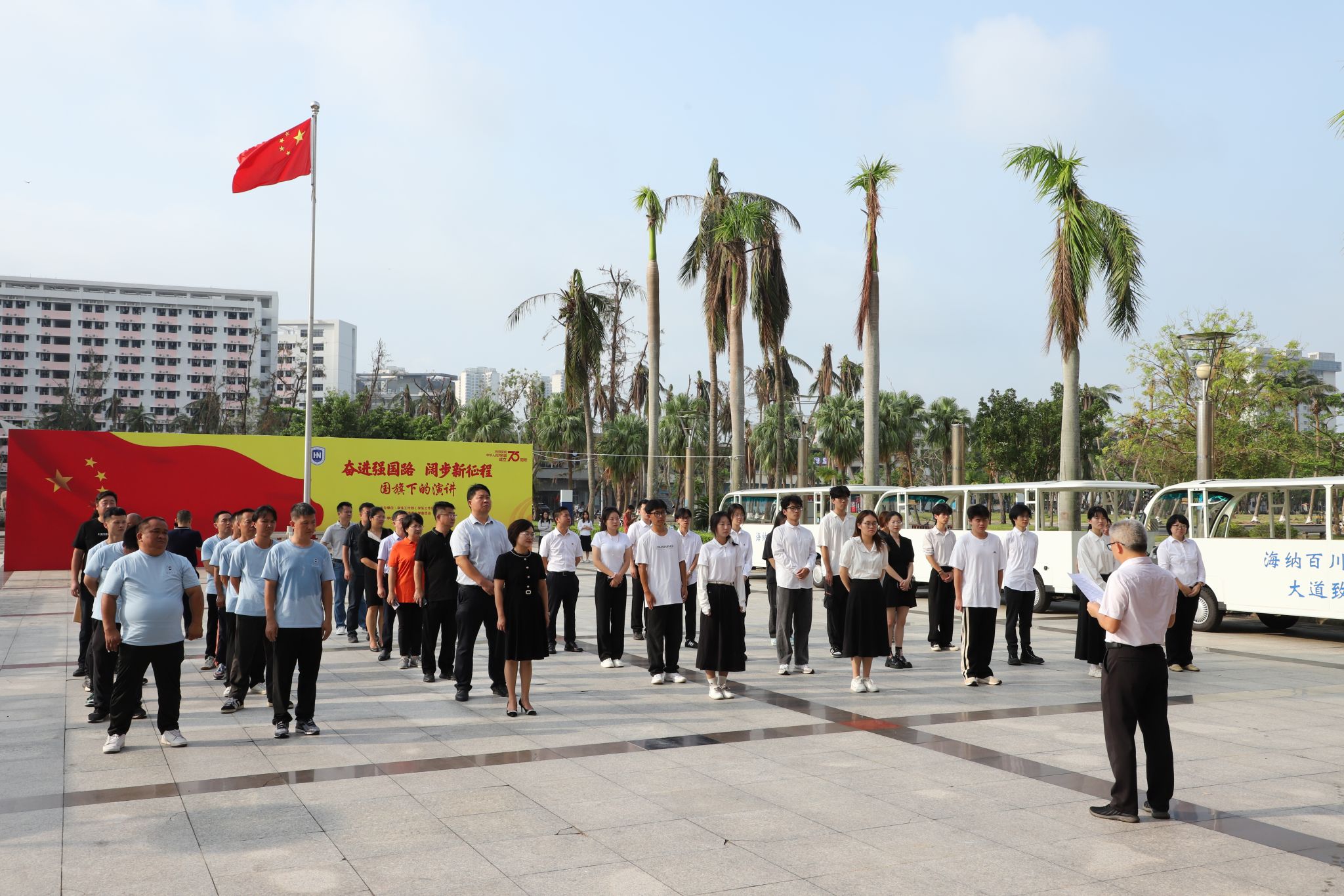 本站讯(通讯员:张征)10月1日上午,海南大学新能源摆渡车启动仪式在办公楼广场举行。海南大学党委常委、副校长邱锡光主持仪式并致辞。
