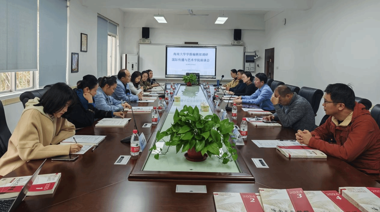 12月26日上午,海南大学学报编辑部调研国际传播与艺术学院座谈会在田家炳楼会议室举行。海南大学学报编辑部主任刘家诚、海南大学国际传播与艺术学院院长郑立波出席会议,学报编辑部副编审张雨晗博士、国际传播与艺术学院党委副书记蒋锐、副院长元志东及学院各系骨干教师等参加会议。会议围绕新闻传播学与艺术学各专业门类及特色方向的科研成果产出展开深入探讨。图 座谈会现场刘家诚介绍了学报发展态势与选题方向,表示双方可以创新交流合作机制,...