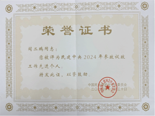 在2024年12月30日至31日召开的民建中央2024年参政议政年会上,民建海南大学支部主委阎二鹏荣获“民建中央2024年度参政议政先进个人”荣誉称号(全国共64位)。 作为海南省政协委员、民建海南省委会副主委和民建海南大学支部主委,长期以来,阎二鹏教授立足本职岗位积极参政议政,对标国际高标准数字经贸规则,围绕海南自由贸易港数据安全有序流动、海南省地方经济社会可持续发展资政建言,参与的多项建言献策得到省部级领导批示和相关部门采纳。...