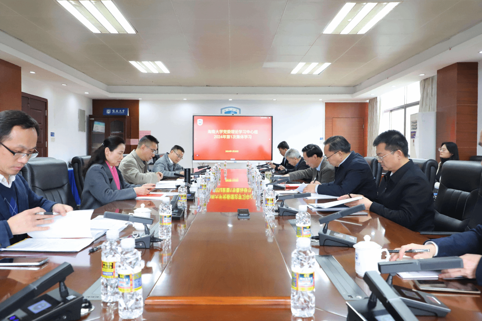 本站讯(通讯员 李布明)1月25日下午,海南大学党委理论学习中心组2024年第1次学习会在办公楼501会议室召开,围绕“深入学习贯彻习近平总书记关于党的自我革命的重要思想,以高质量党建引领学校高质量发展”主题开展学习研讨。校党委书记符宣国主持会议,党委常委和校领导张继友、高佃恭、邱锡光、贺勇、韩淑梅、谭勇参加会议。会议传达学习了习近平总书记在二十届中央纪委三次全会上的重要讲话、在省部级主要领导干部推动金融高质量发展专题研讨班开班式上的重要讲话和省委八届四次全会精神,...
