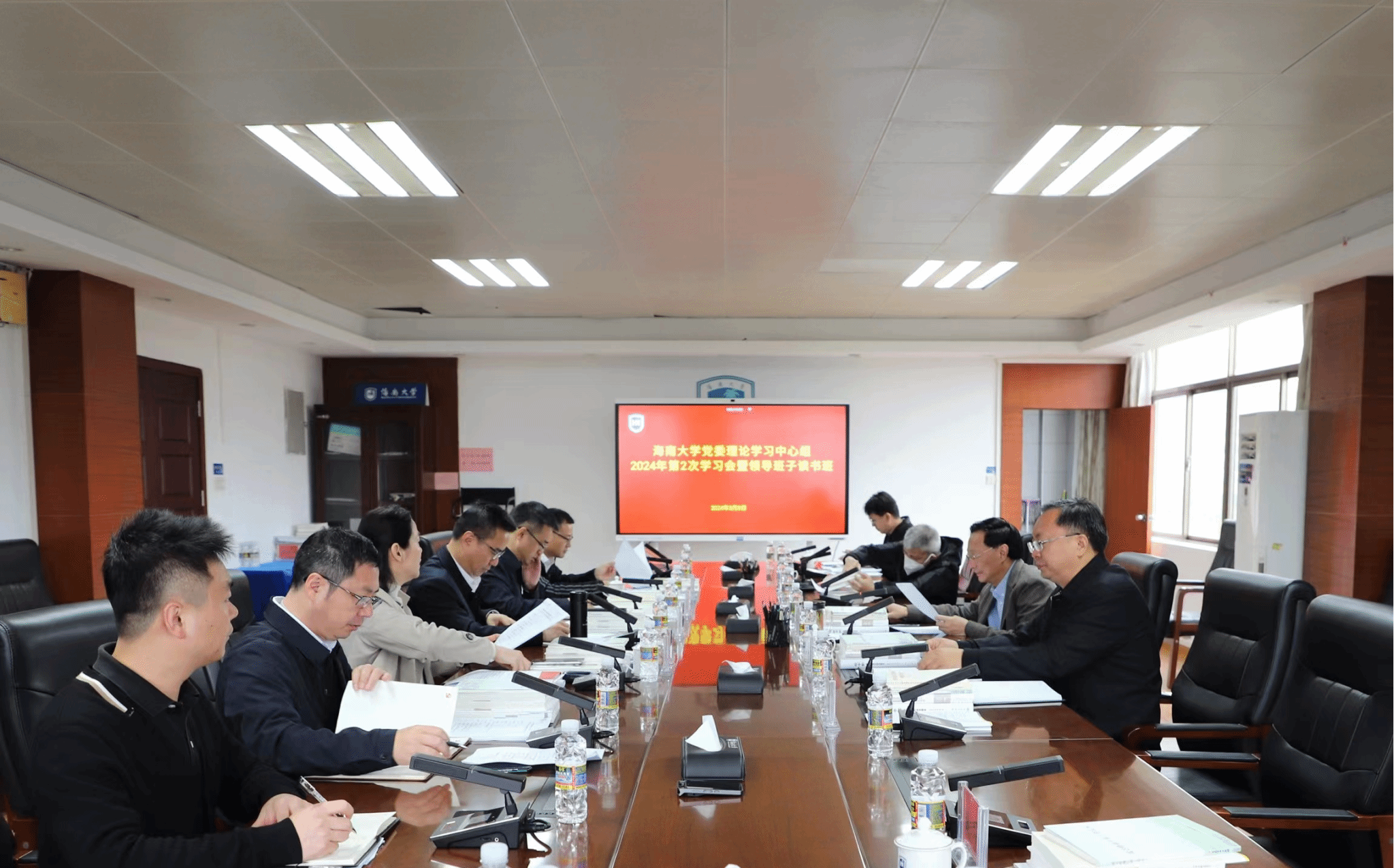 本站讯(记者 李佳霖)3月8日至9日,海南大学党委理论学习中心组2024年第2次集中学习会暨领导班子读书班在办公楼501会议室召开,围绕“深入学习领会习近平总书记关于发展新质生产力的重要讲话精神,加快推进学校高质量发展”主题开展学习研讨。校党委书记符宣国主持会议,党委常委和校领导张继友、高佃恭、邱锡光、贺勇、刘谦、韩淑梅、谭勇参加会议,副校长曹兵列席会议。会议现场。高光耀 摄读书班通过专题学习、辅导报告、集中自学和个人自学等相结合的方式开展学习,...