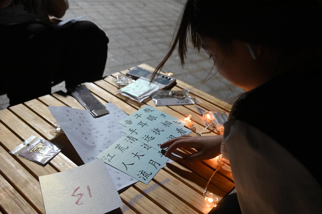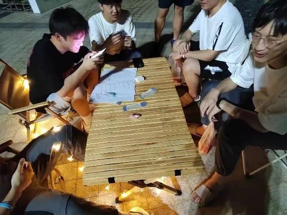 晚风轻柔,闲来静处,且将诗酒猖狂。在这里,凤箫声动,玉壶光转,在这里,月满人间,诗情挥洒。赏灯节接近尾声,同学们仍然余兴未尽。一张张小木桌挂起星星小灯,灯光柔和了同学们的脸庞,也点亮了心中的诗情。