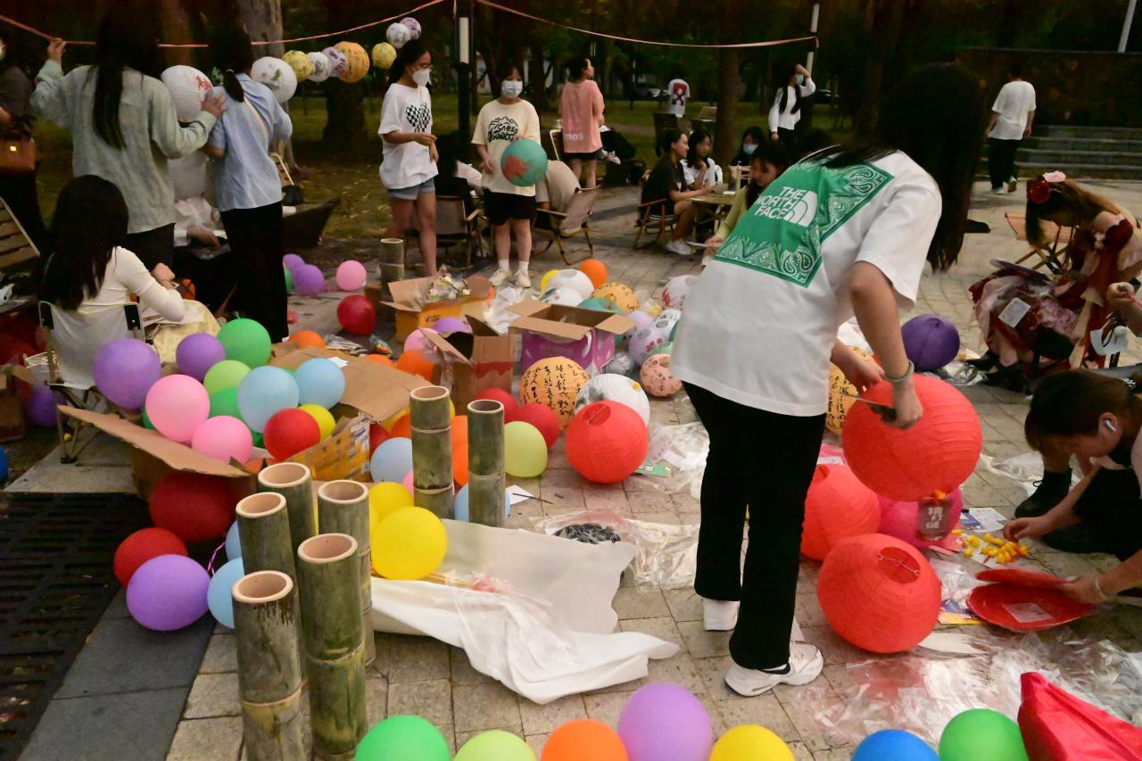活动尚未开始,工作人员已提前来到场地布置,组装花灯,钩挂彩灯,装扮活动现场。活动内容也是精心筹备,充满意趣。