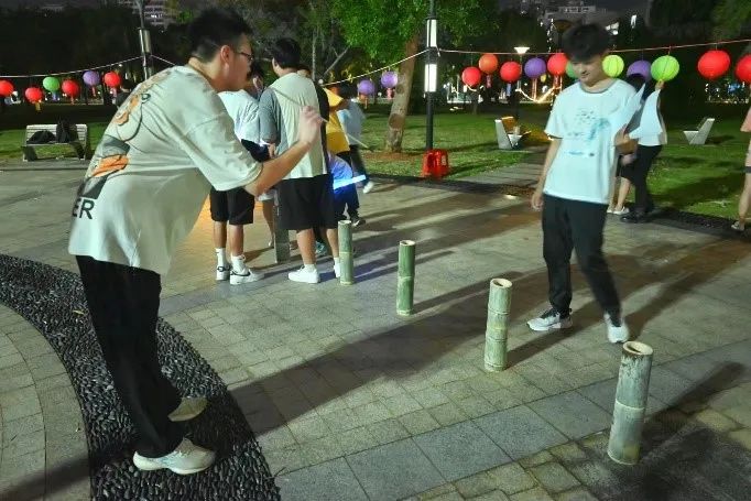 赏灯会共由六个游戏环节组成。现场摆好小木桌和小板凳组成游戏区,每个游戏区都有工作人员协助游戏开展,游戏中胜者可获得小奖品。