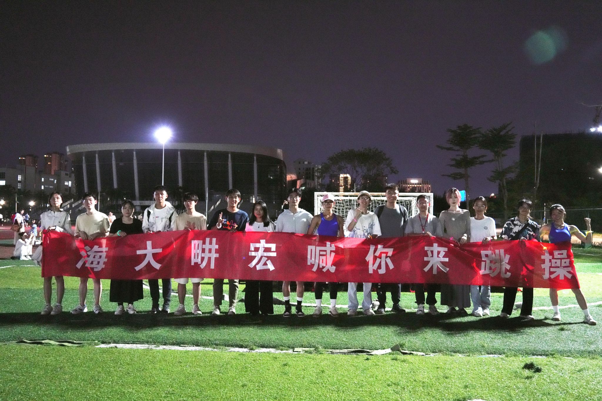 5月12日晚,由共青团海南大学委员会新媒体中心联合海南大学子衿书院及海南大学学生会在海甸校区第二田径场举办的“海大畊宏喊你来跳操”活动顺利举行。鼓励大学生通过跳操方式积极参与健康生活方式,关注自身身心健康,共同迎接更加美好的未来。
