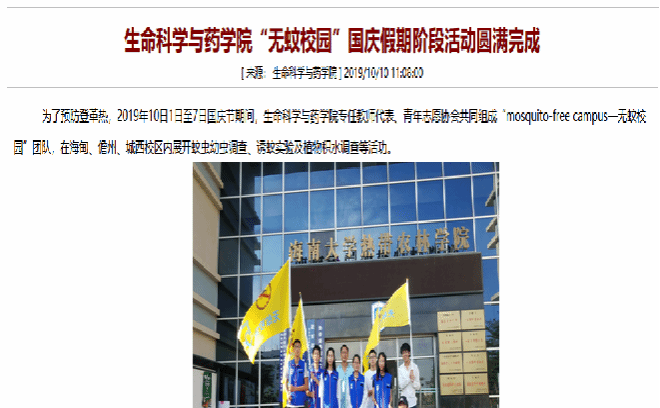 参与海南省病媒生物防控,抗击非洲猪瘟疫情,组织“无蚊校园”社团,为海南省自由贸易的健康建设,起到积极推进作用;研发病媒防控新型药剂和病原诊断技术,授权专利4项,发表论文100余篇。