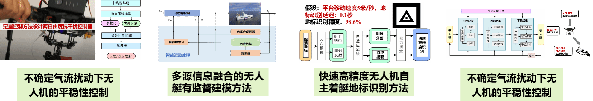 我国拥有辽阔的海洋国土,海上事故频发,推进海上搜救装备发展对实施“海洋强国”战略具有重要意义。团队深入研究空海跨域协同技术,围绕无人机自主着艇这一关键挑战,攻克了4个关键技术。