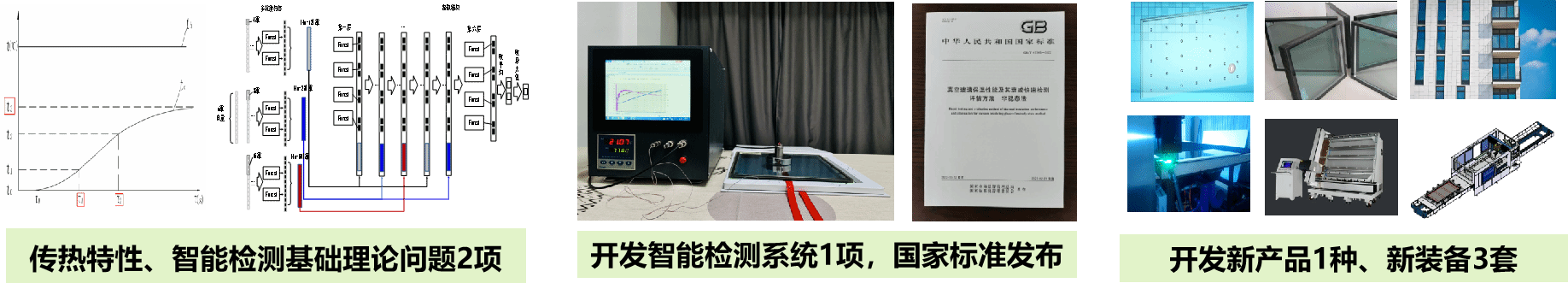 以真空玻璃保温性能的快速精准检测为研究目标,经过产学研一体化联合攻关,建立了真空玻璃生产与应用成套技术创新体系,开发了智能检测系统、新产品和加工配套装备。